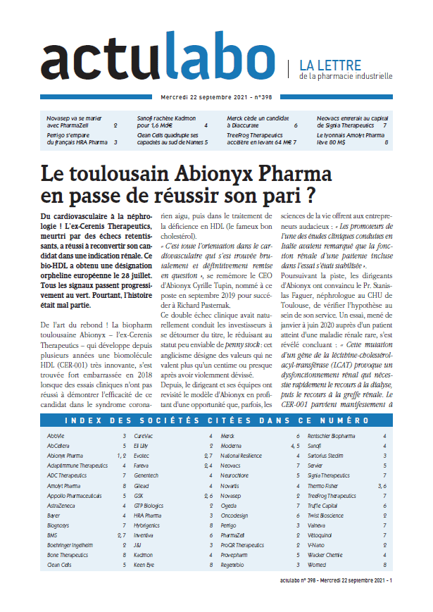 GTP Bioways is highly proud to support Abionyx Pharma development thanks to 2 of its facility : GTP Nano (formerly V-nano) and GTP Biologics.