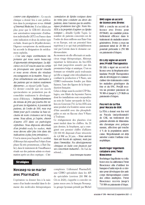 GTP Bioways is highly proud to support Abionyx Pharma development thanks to 2 of its facility : GTP Nano (formerly V-nano) and GTP Biologics.